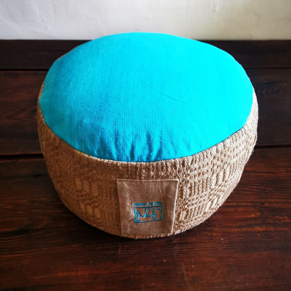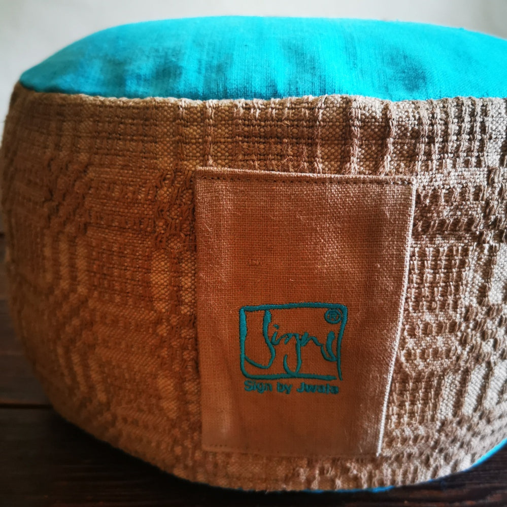 Besonderes Meditationskissen aus handgewebtem Bauernleinen – Dekoratives Sitzpolster mit Dinkelspelz-Füllung