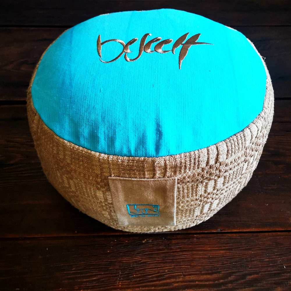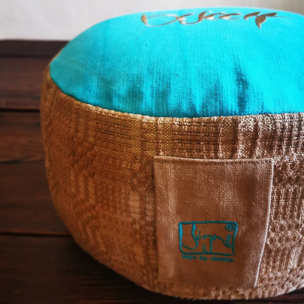 Erlebe pure Entspannung und stilvolle Wohnkultur mit diesem besonderen Meditationskissen aus 100 % handgewebtem, antikem Bauernleinen. Jedes Sitzpolster wird in Tirol sorgfältig genäht, von Hand gefärbt und aufwendig mit dem inspirierenden Sign by Jwala® „beseelt“ bestickt – ein echtes Unikat für alle, die außergewöhnliche Meditationskissen oder dekorative Sitzpolster suchen.