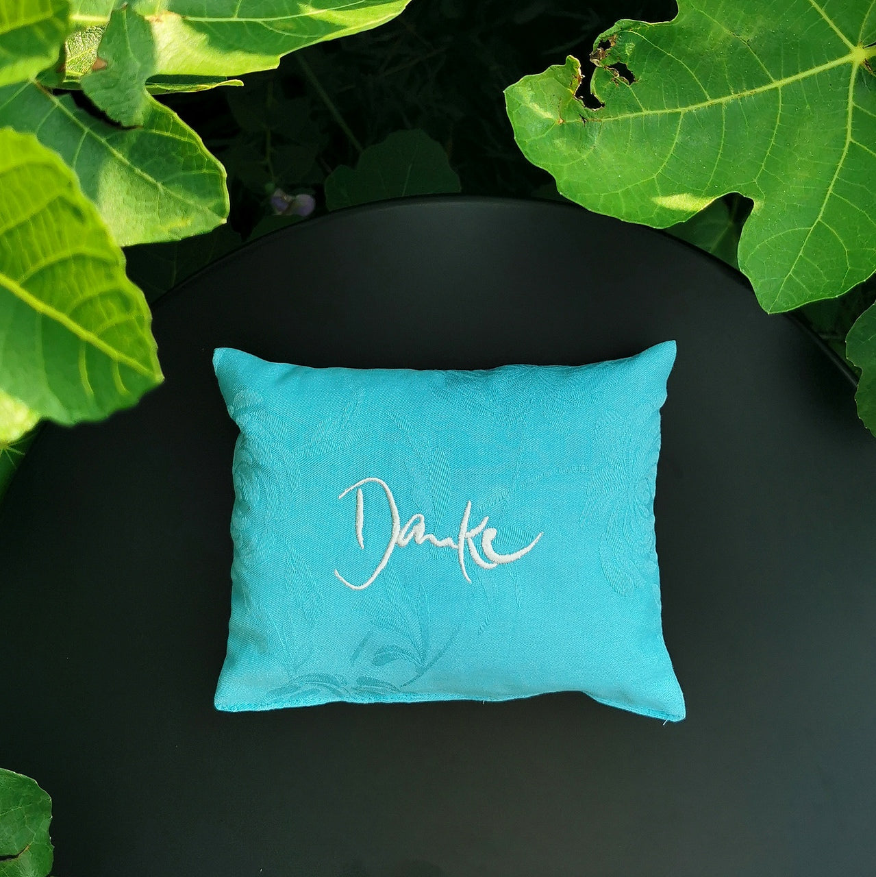 Dekoratives Duftkissen mit Botschaft: Die „Danke“-Stickerei erinnert täglich an Wertschätzung und Dankbarkeit.