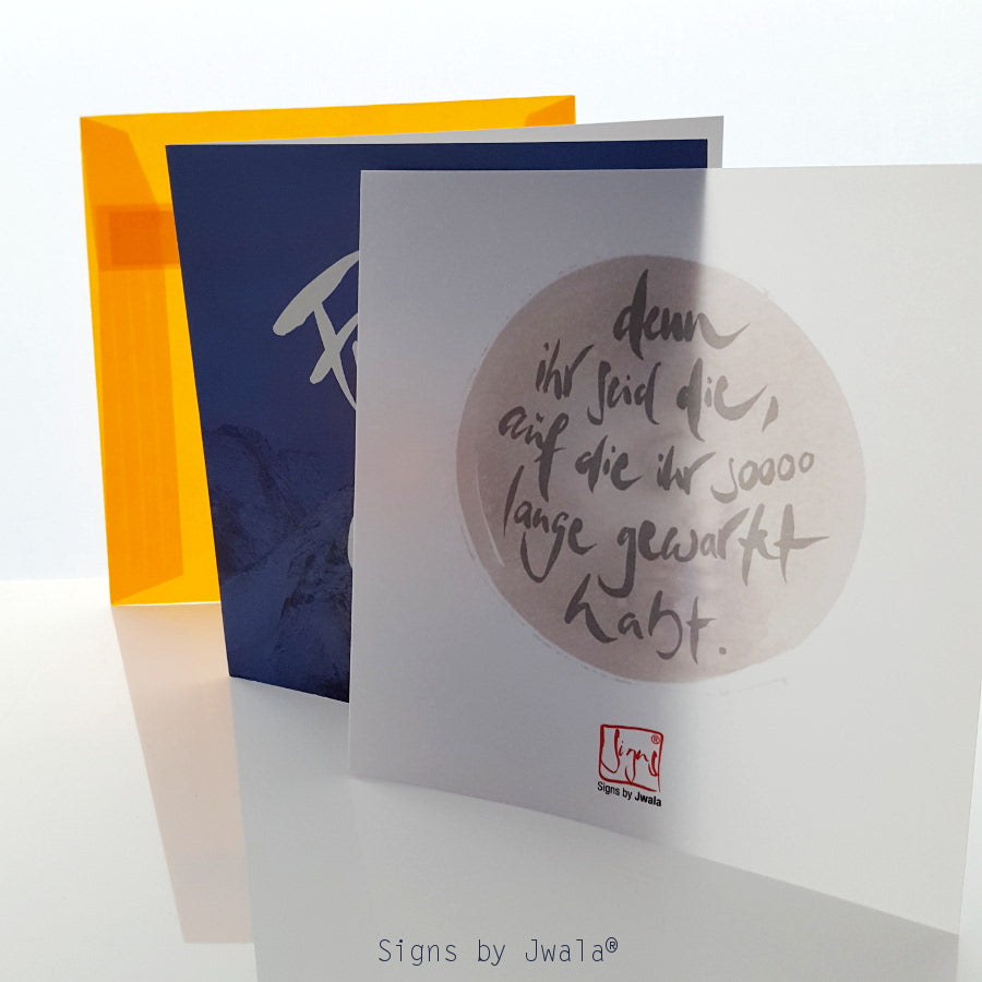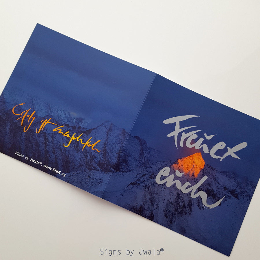 "Freuet euch." (Sign by Jwala®), "Erfolg ist menschlich." auf der Rückseite in orange