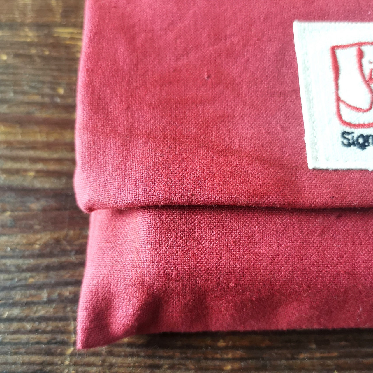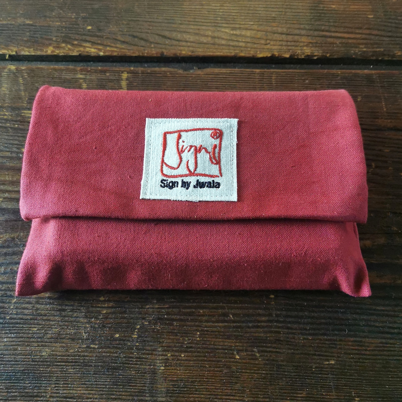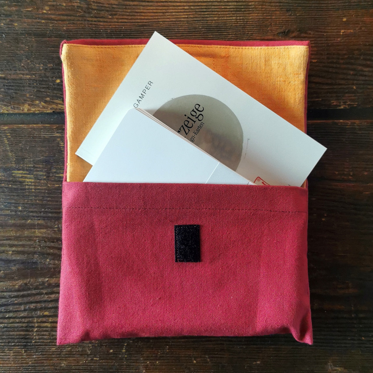 | Farbe: | "Weinrot" (Bauernleinenhülle), "Orange" (Bauernleinenfutter) |
