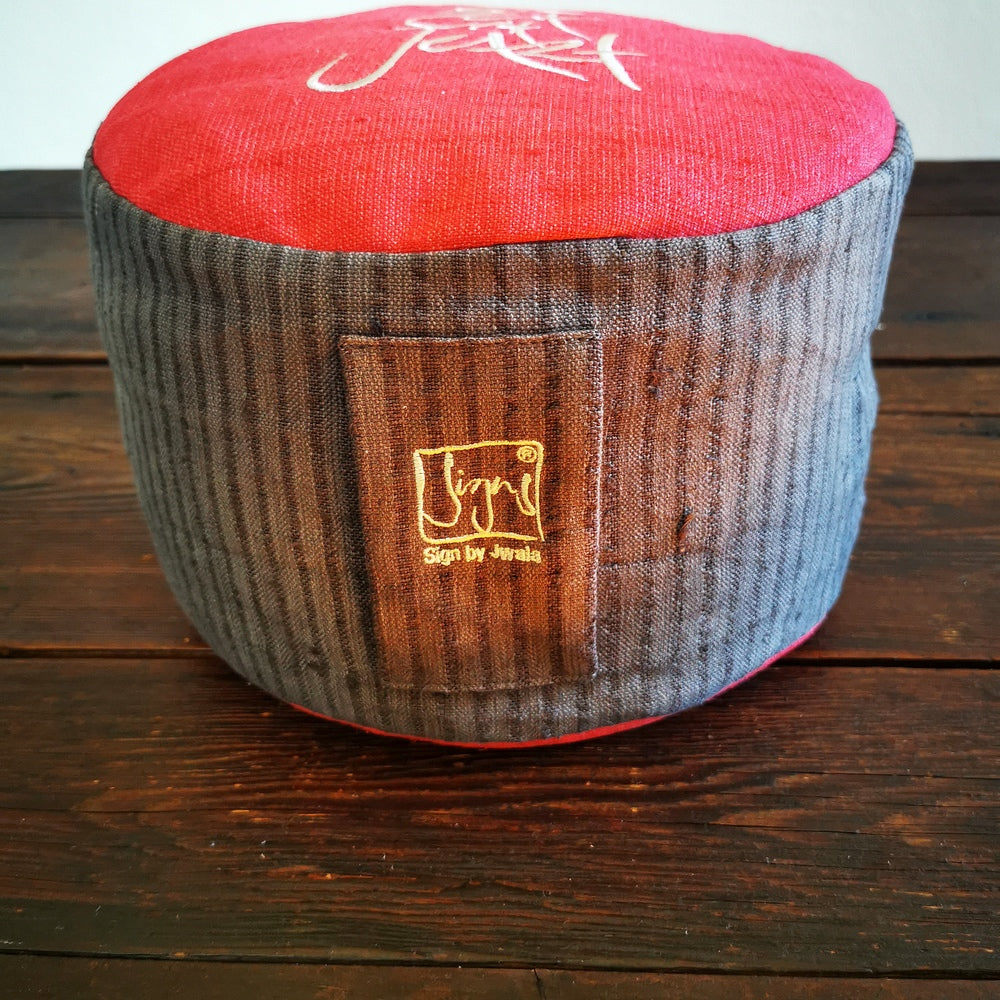 Erlebe Meditation und Yoga auf einem besonderen Meditationskissen, das Natürlichkeit, Komfort und Tradition vereint. Unser handgefertigtes Sitzkissen mit Dinkelspelz-Füllung besteht aus 100 % antikem, handgewebtem Bauernleinen – gewaschen, gefärbt und mit einem praktischen Griff sowie Reißverschluss ausgestattet. Jedes Kissen wird in Tirol mit viel Liebe genäht und einseitig mit einem inspirierenden „Sign by Jwala®“ bestickt – ein echtes Unikat für deine Auszeit.