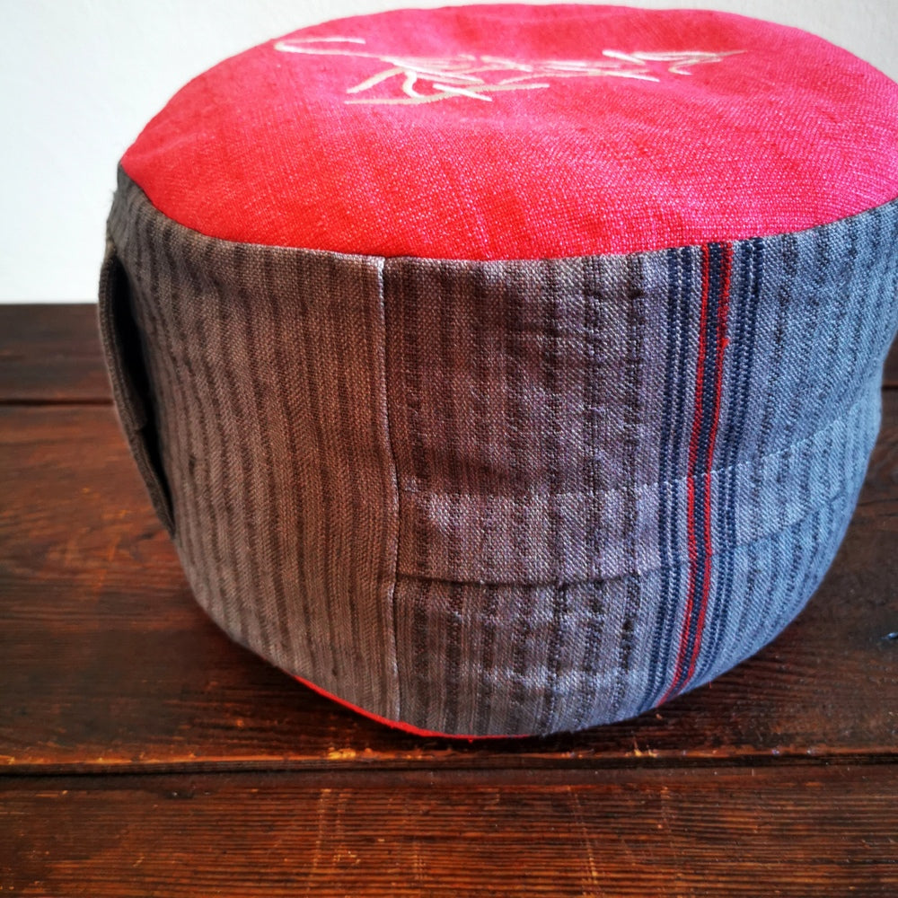 Besonderes Meditationskissen aus Bauernleinen – Handgefertigtes Sitzkissen mit Dinkelspelz für Yoga & Achtsamkeit
