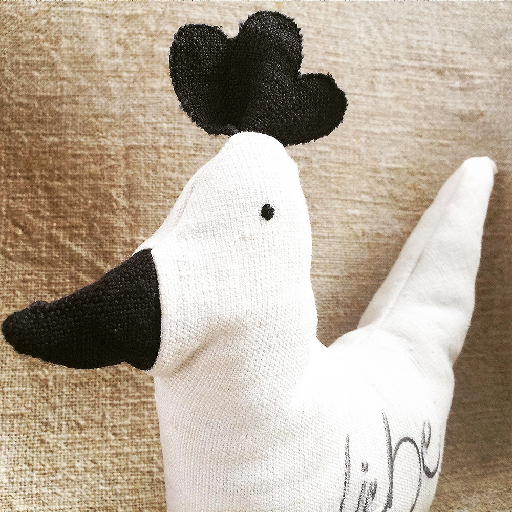 Spirituelles Deko-Hühnchen „Liebe“ – Handgemachtes Unikat aus Bauernleinen mit inspirierender Botschaft