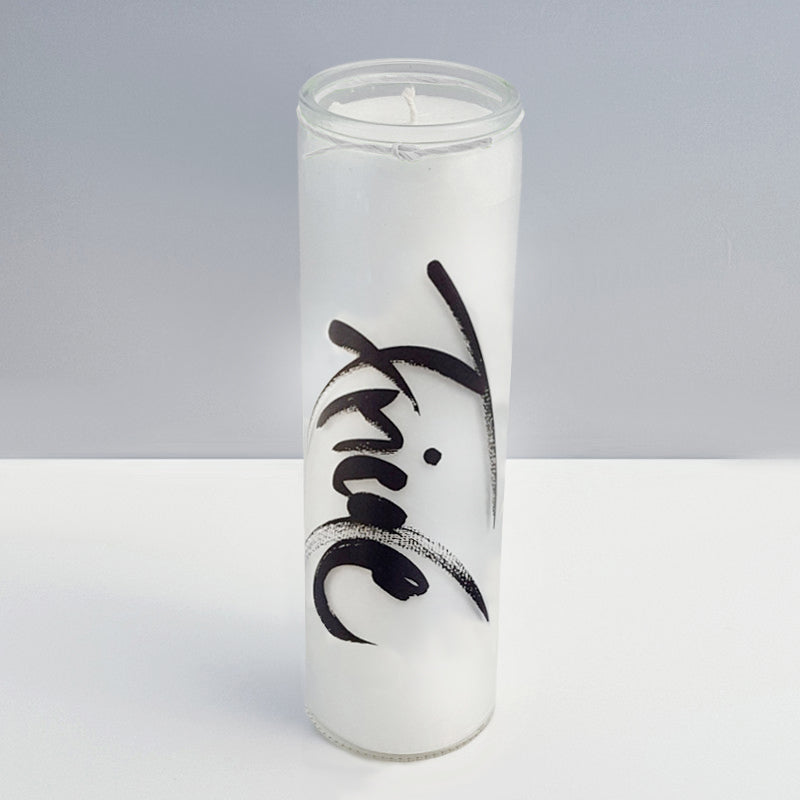 Unsere „Friede“-Kerze ist ein kraftvolles Symbol für inneren und äußeren Frieden. Das Sign „Friede“ erscheint auf milchweißer Folie in schwarzer Schrift, die senkrecht von oben nach unten verläuft und dabei an das Motto „Peace on Earth“ erinnert – Frieden, der den Boden erreicht, der in unseren Räumen und in uns selbst ankommt.