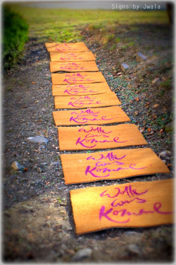 Spirituelle Fußmatte „Wolle, was komme“ – Handgefertigtes Unikat für deinen Eingangsbereich