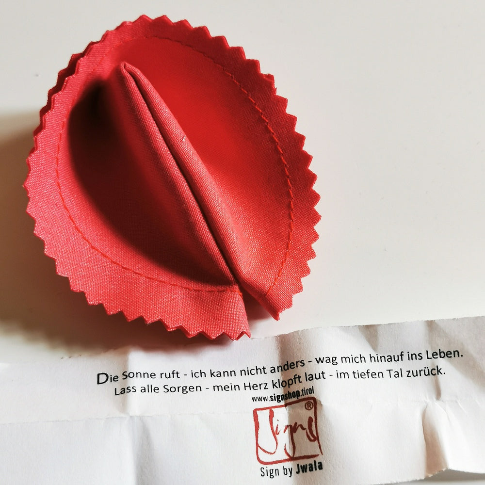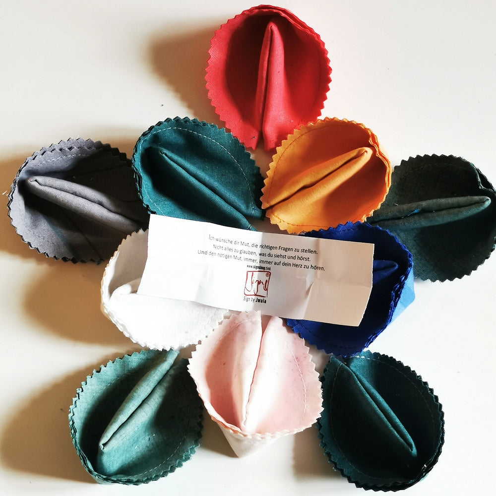 Verschenke oder entdecke mit unseren handgefertigten Glückskeksen einen liebevollen Impuls für mehr Freude und Inspiration im Alltag. Jeder Glückskeks ist ein kleines Sign-Seelenstück, gefertigt aus handgewebtem, selbstgefärbtem Bauernleinen – jede Farbe und jeder Stoff eine Überraschung, die das Herz berührt.