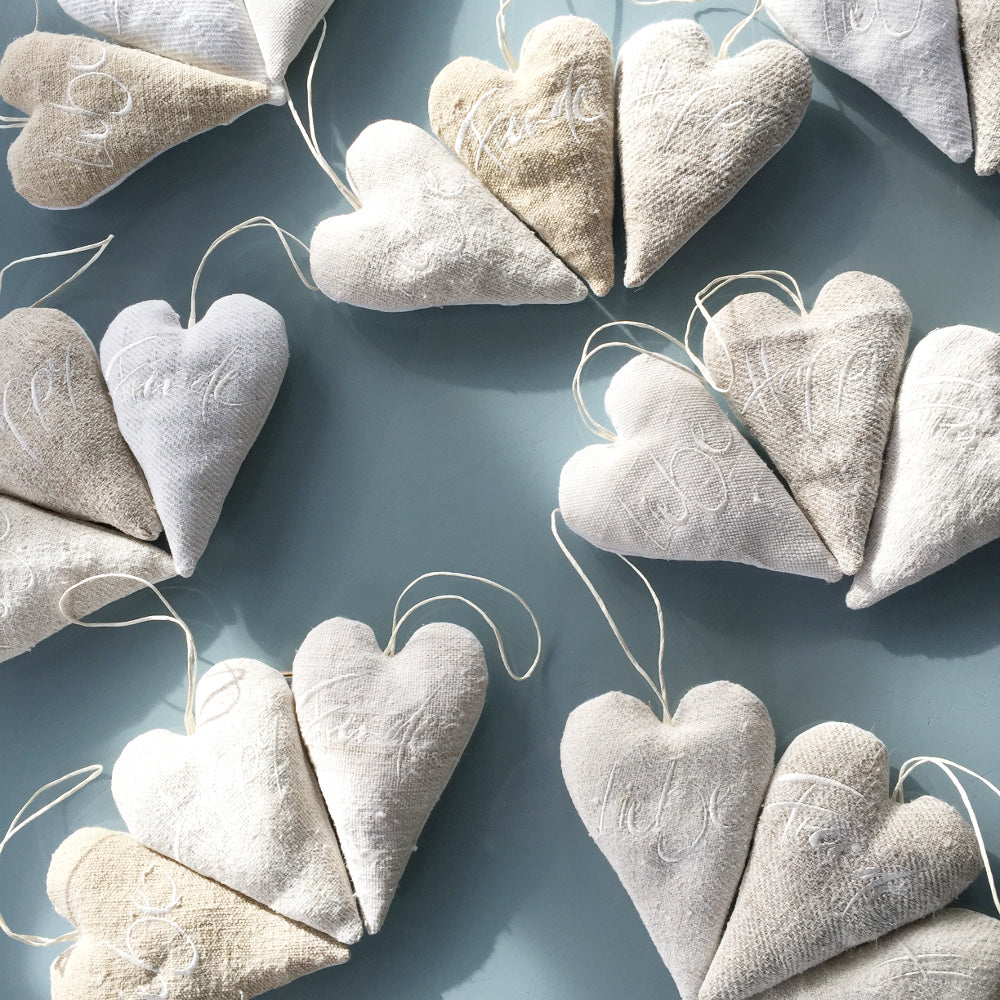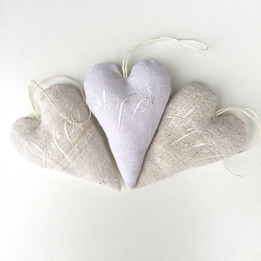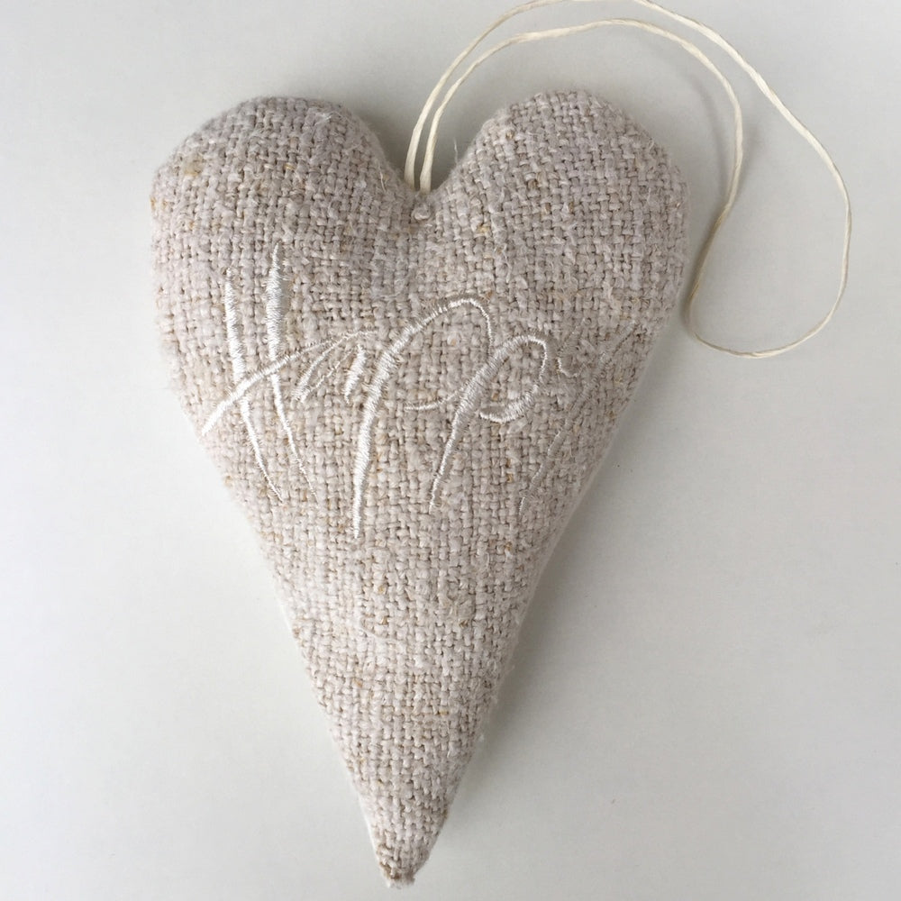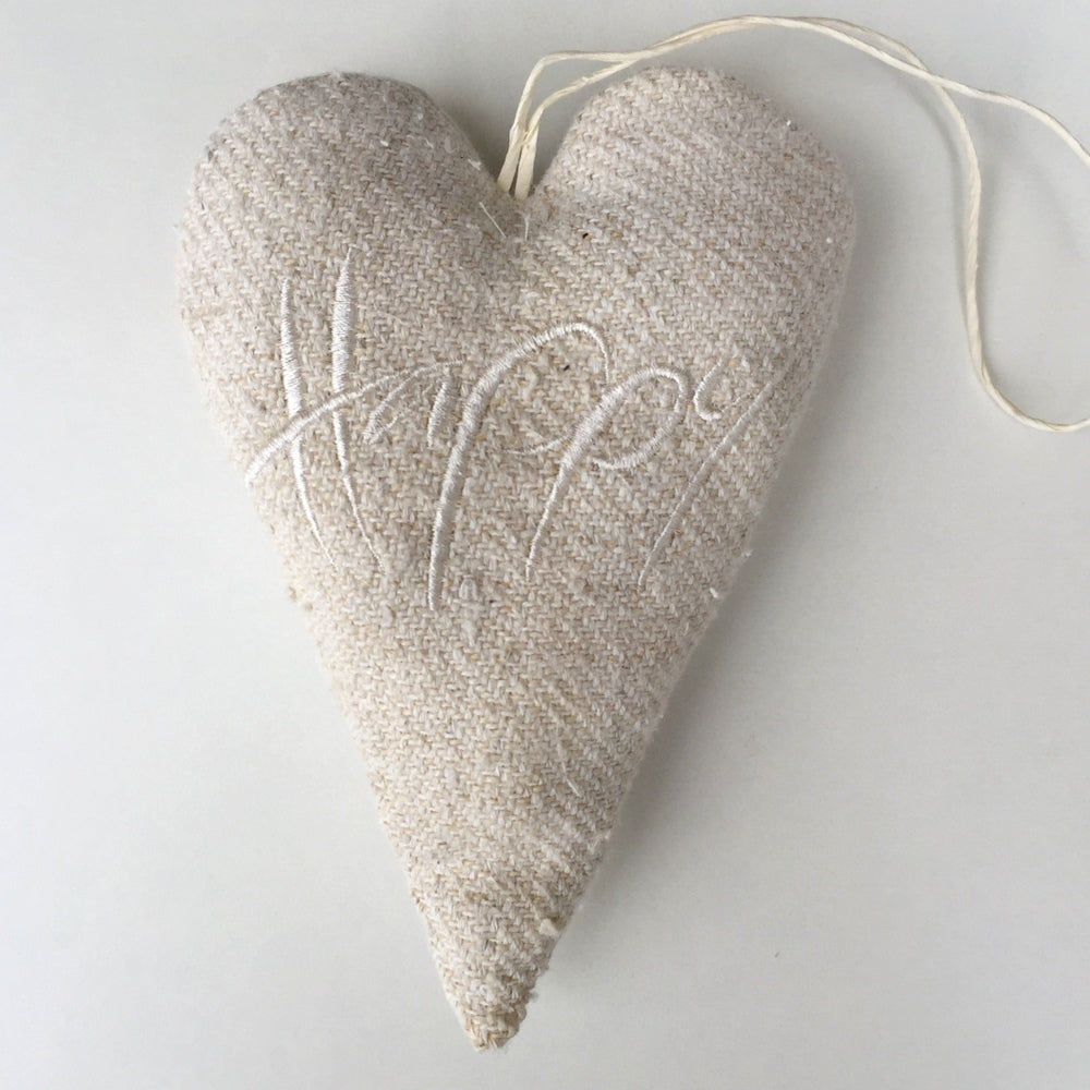 Handgemachtes Deko-Herz „Happy“ aus Tirol – Liebevoll bestickt auf antikem Bauernleinen