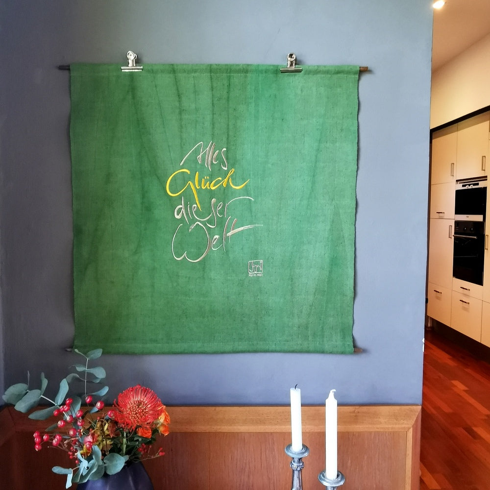 Einzigartige Handwerkskunst für dein Zuhause – Wandteppich „Alles Glück dieser Welt“