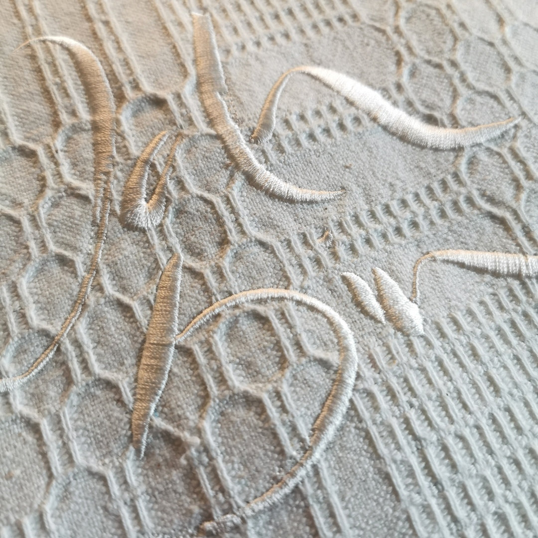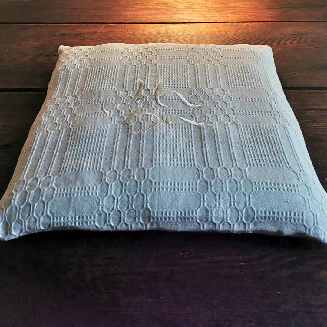 Flachkissen aus Bauernleinen mit Waffelmuster – Sign „Ich bin“ für bewusste Präsenz