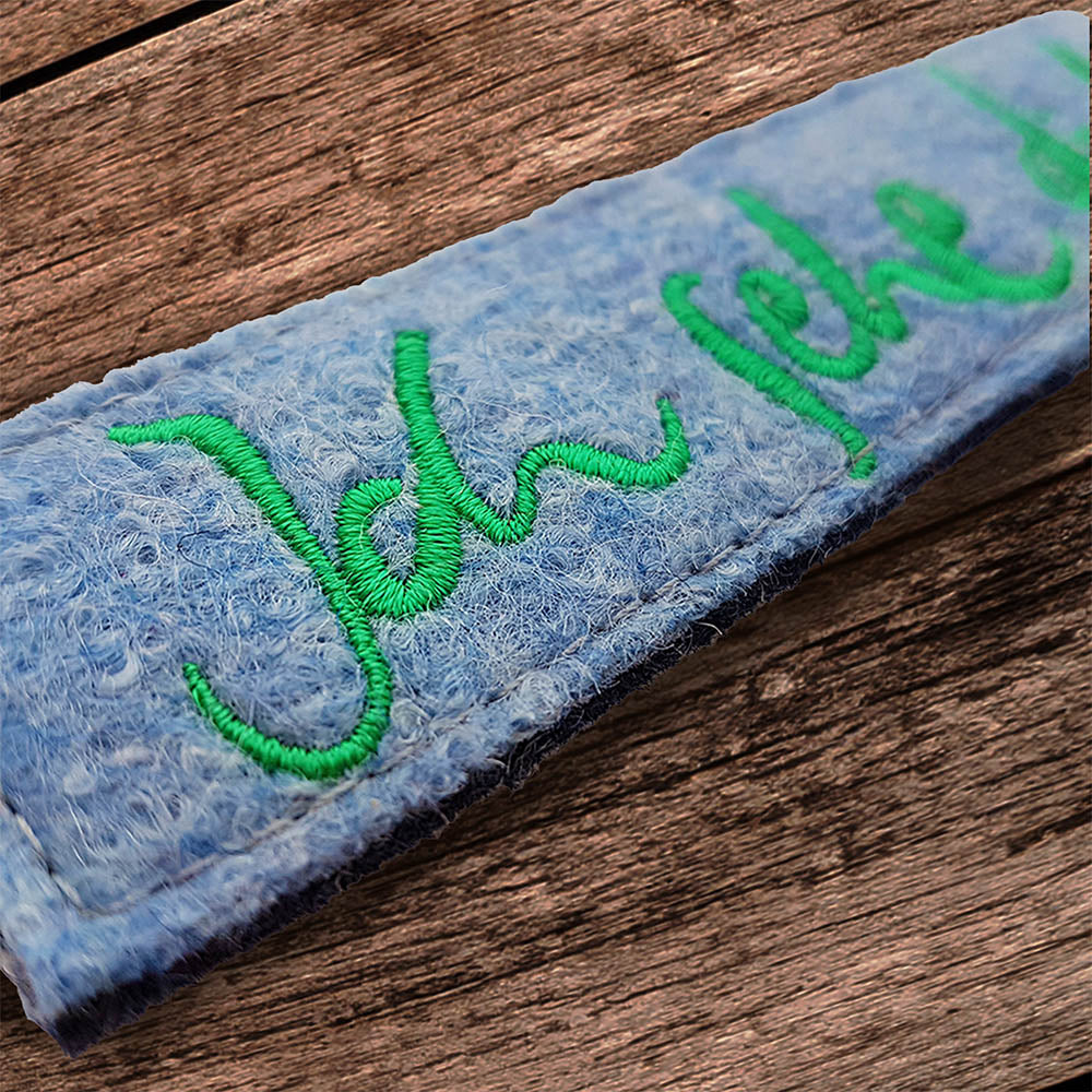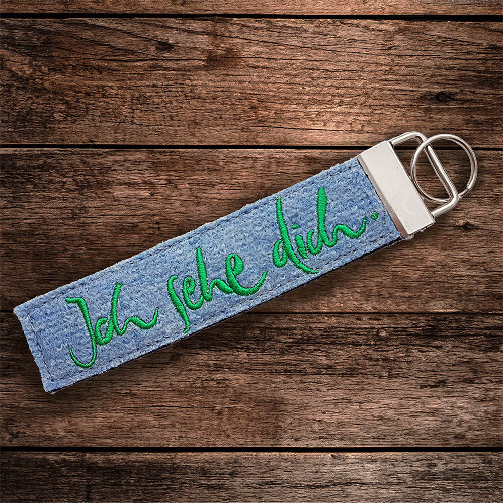 Ein Schlüsselanhänger, der Herzen berührt und den Alltag mit Achtsamkeit erfüllt: Unser exklusiver Anhänger mit dem Sign „Ich sehe dich“ ist mehr als ein praktisches Accessoire – er ist ein liebevoller Begleiter, der Verbundenheit und Wertschätzung spürbar macht. Gefertigt aus 100 % Wollwalk der Tiroler Traditionsmanufaktur Giesswein, vereint er das sanfte Hellblau der Oberseite mit dem tiefen Dunkelblau der Unterseite. Die grüne Stickerei verleiht dem Anhänger eine inspirierende, beruhigende Note.