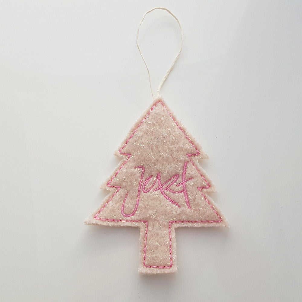 Handgemachter Weihnachtsbaumschmuck in Hellrosa-Glitzer, inspirierender Baum-Anhänger