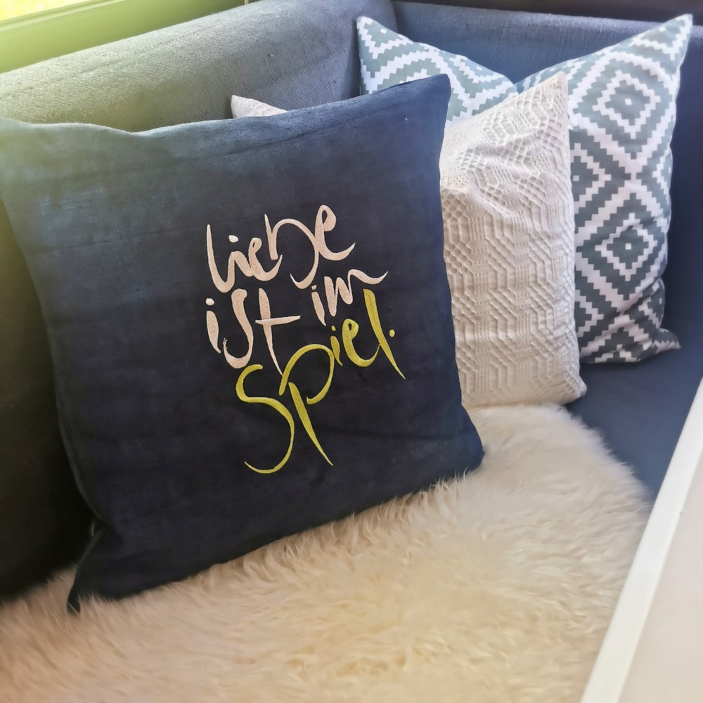 Kissenhülle Bauernleinen "Liebe ist im Spiel"