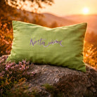 Dekokissenhülle „Nestwärme“ – Handgefertigtes Unikat aus Bauernleinen mit Botschaft