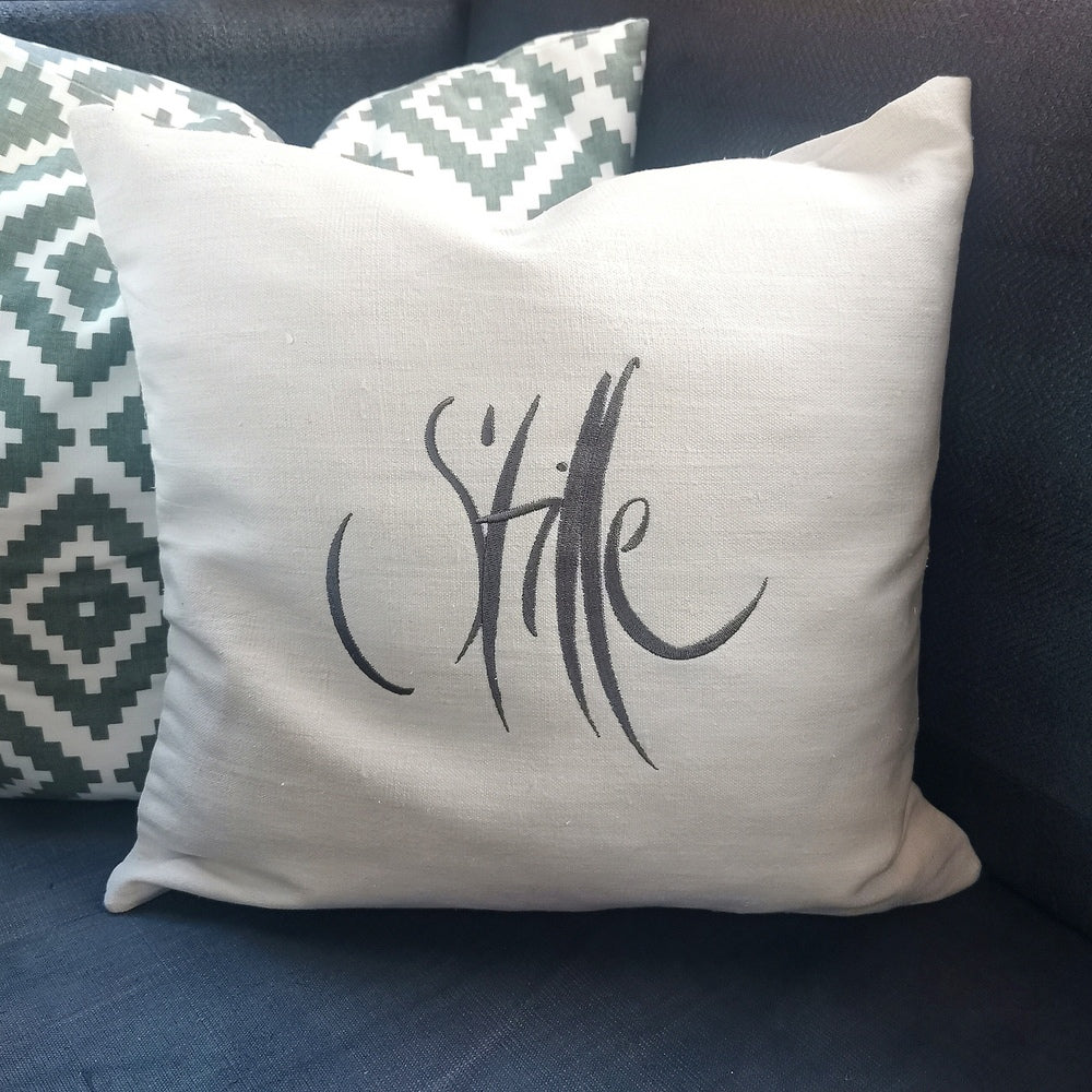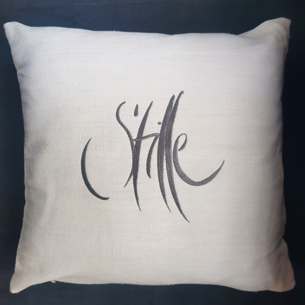 Dekokissenhülle „Stille“ aus antikem Bauernleinen – 40x40 cm, handbestickt & limitiert