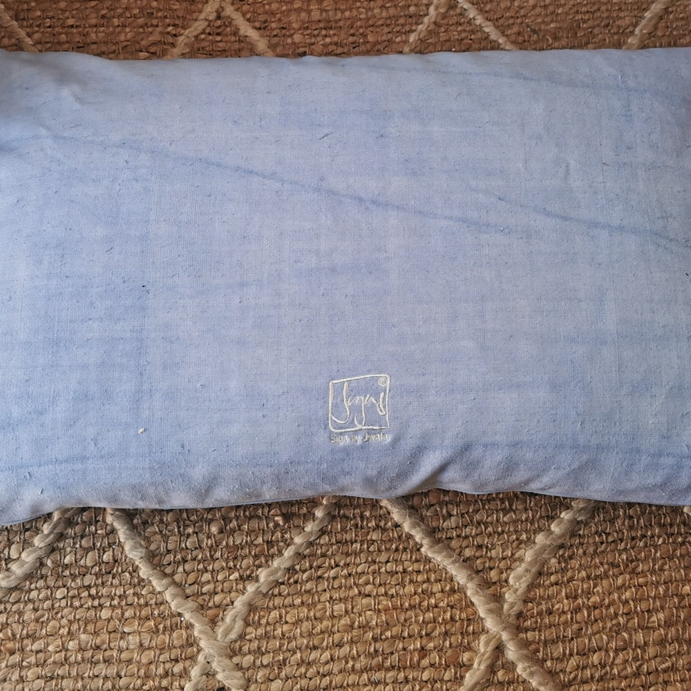 Die Kissenhülle ist pflegeleicht und langlebig: Waschbar bei 60 Grad, am besten mit reduzierter Schleuderzahl, damit das Leinen beim Trocknen glatter bleibt. Zum Bügeln eignet sich viel Dampf oder das Einsprühen mit Wasser.