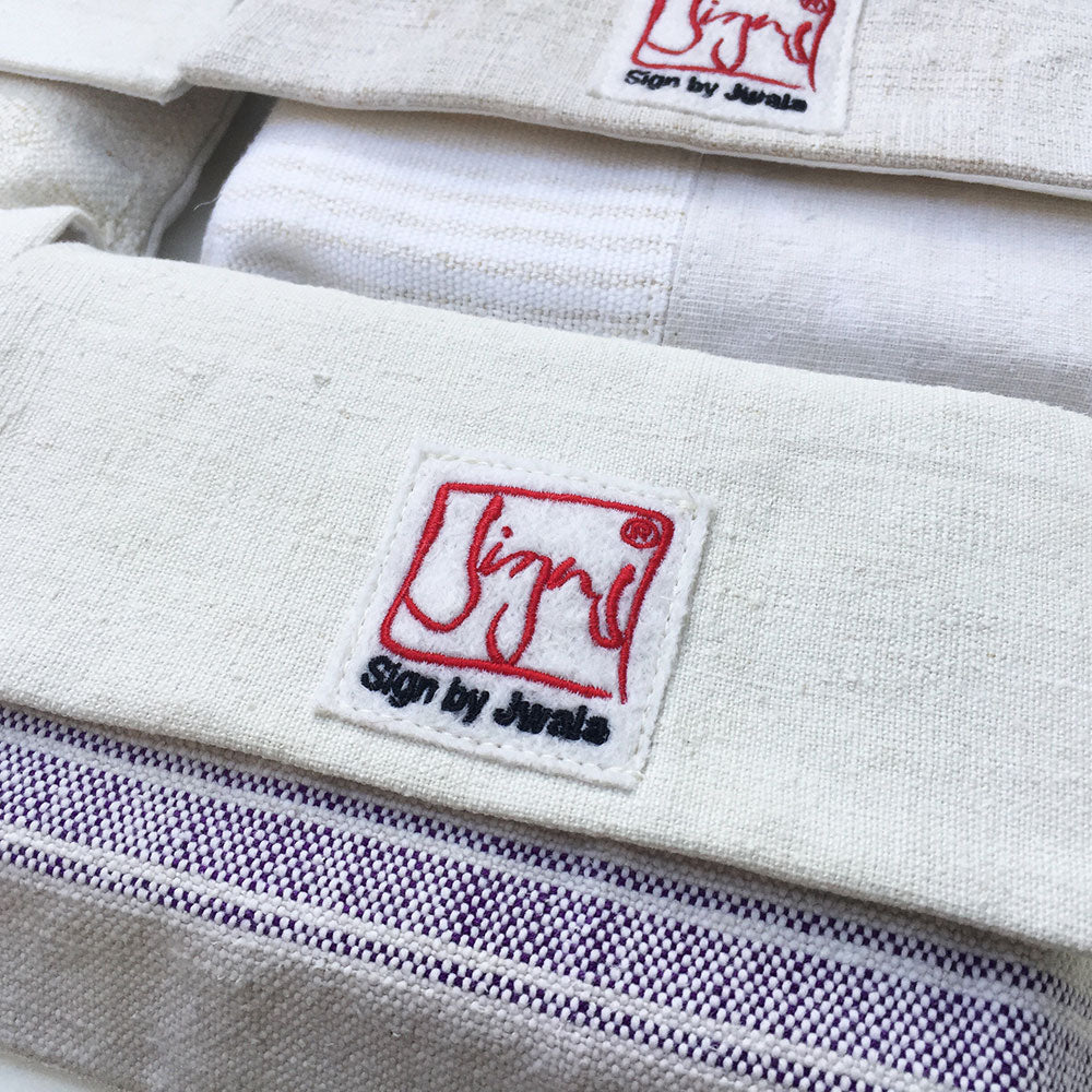 Bei uns erfährt es eine Wertschätzung, die in den wunderschönen Bauernleinen-Produkten im SignShop.tirol gipfelt. Jwala wäscht und färbt die Leinenballen eigenhändig und sie lässt die Zuschnitte in Tirol mit Signs by Jwala® besticken, bevor die Stücke in der Claudiaschlössl-Schneiderei genäht werden. All das ist sehr arbeits- und zeitintensiv; auch, weil es schwierig und zeitintensiv ist, dieses alte Linnen überhaupt zu bekommen.