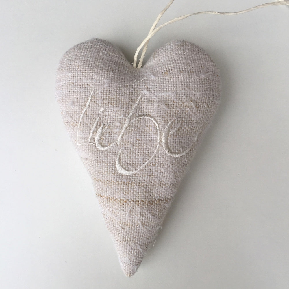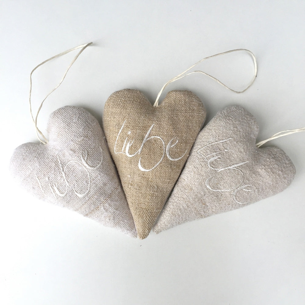 Handgemachtes Deko-Herz aus Tirol – Liebevoll bestickt auf antikem Bauernleinen