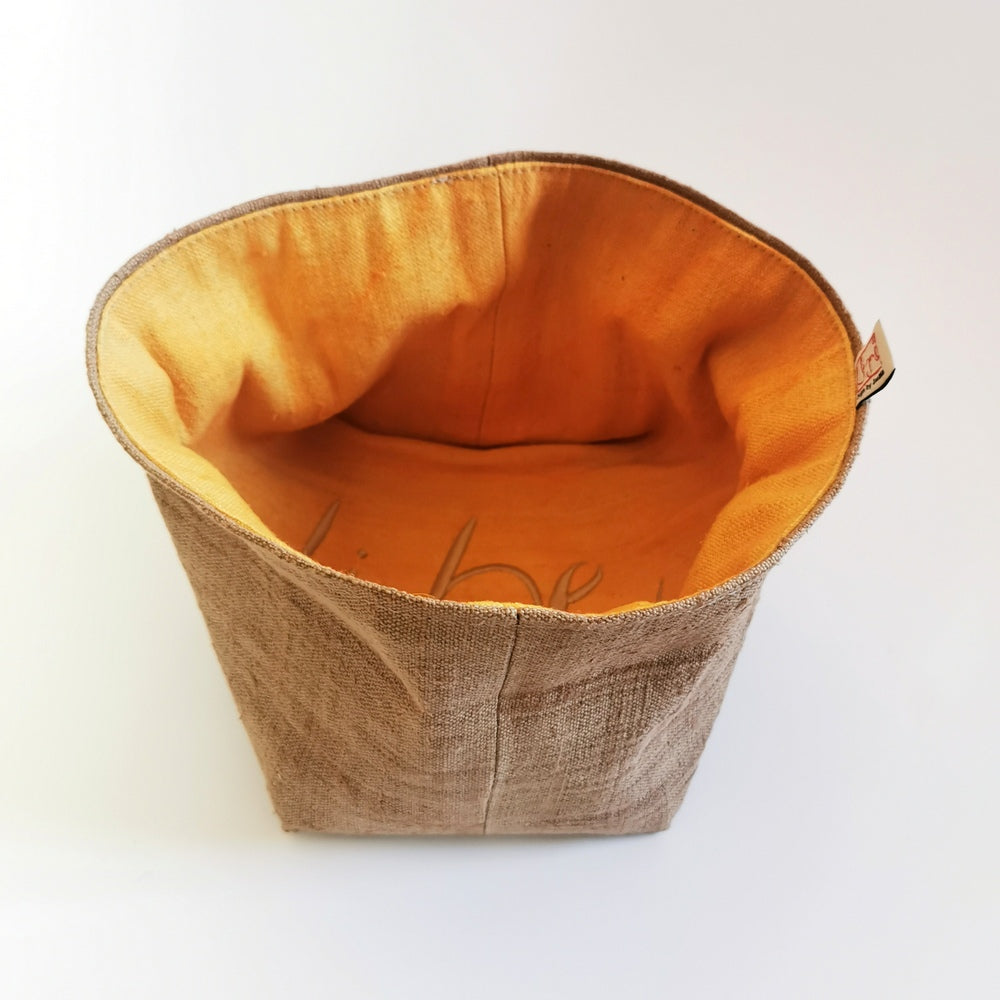 Handgefertigtes Brotkörbchen aus Bauernleinen – Mit „Liebe“-Stickerei für stilvolles Servieren