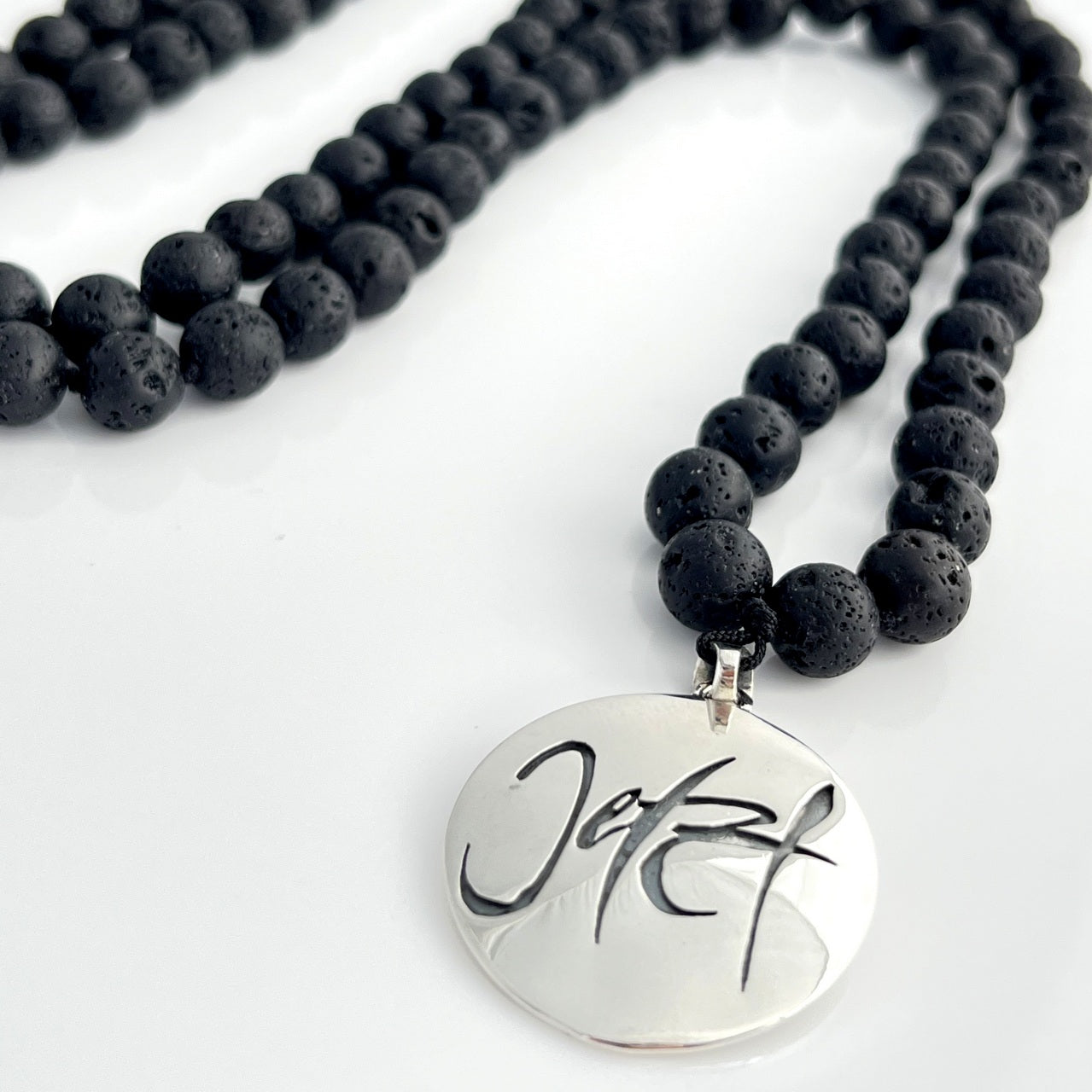 Der schwarze Lavastein, geboren aus der Urkraft des Feuers, steht für Stabilität, Durchhaltevermögen und innere Stärke. Er hilft dir, dich immer wieder im Hier und Jetzt zu verankern und deine Energie gezielt zu bündeln. Das Sign „Jetzt“ – als Amulett aus 925er Sterlingsilber – erinnert dich bei jeder Berührung daran, den Moment bewusst zu leben und deine Kraft aus der Gegenwart zu schöpfen.