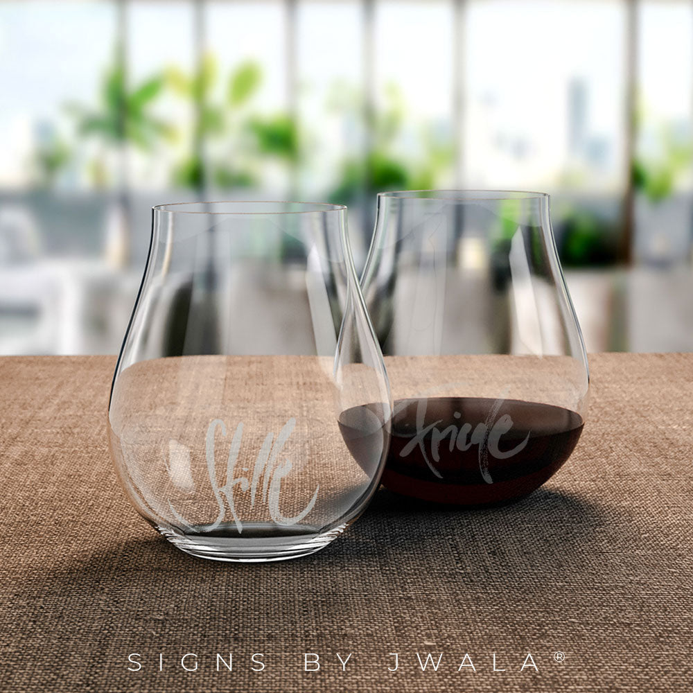 Du suchst besondere Gläser, die mehr als nur schön sind? Die Sign-Gläser „Stille“ und „Friede“ vereinen meisterhafte Sandstrahlkunst und edles Design auf vollendete Weise. Jedes Glas wird in Zusammenarbeit mit unserem Glaskünstler aus dem Nachbarort gefertigt und mit den inspirierenden Signs by Jwala® veredelt. Das 2er-Set besticht durch seine außergewöhnliche Form, ist stapelbar, spülmaschinengeeignet und bringt mit jedem Schluck ein Gefühl von Ruhe und Harmonie in deinen Alltag. Glaskunst in Vollendung – für alle, die das Besondere lieben.