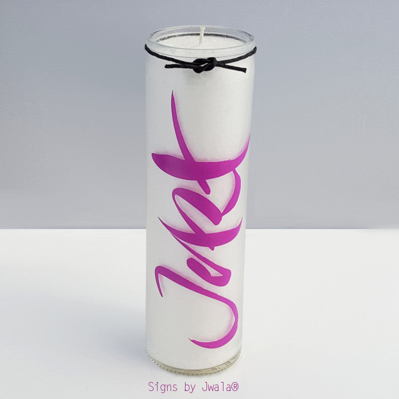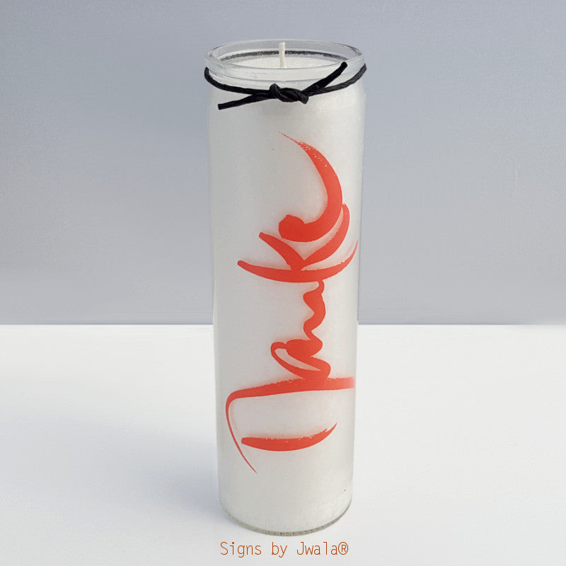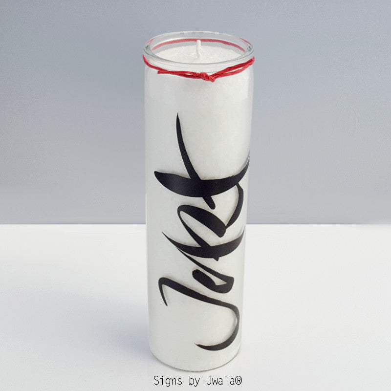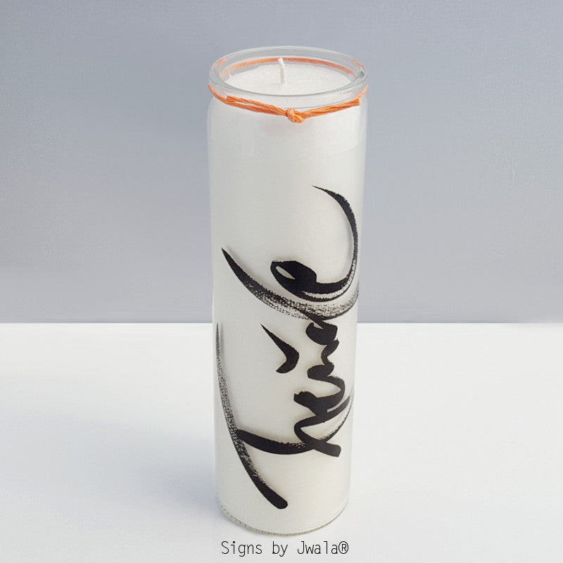 "Friede", "Jetzt", "Danke", "Freude", "Stille", "Liebe" (Sign by Jwala®) - je eine Kerze in Farbe und Schwarz