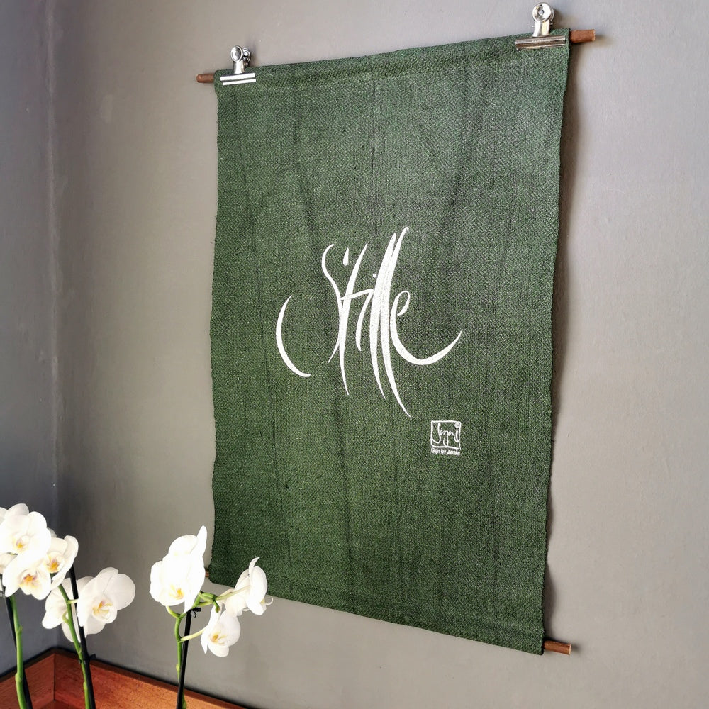 Dieser außergewöhnliche grüne Wandteppich „Stille“ aus der Sign-Haussegen-Kollektion ist ein echtes Herzensstück für alle, die sich nach mehr Ruhe, Kraft und Inspiration in ihrem Zuhause sehnen. Das kunstvoll handgefertigte Einzelstück strahlt eine tief ermächtigende Wirkung aus: Es lädt den Raum mit einer spürbaren Energie der Stille auf und verbindet dich mit der Kraft, die in der Ruhe liegt.