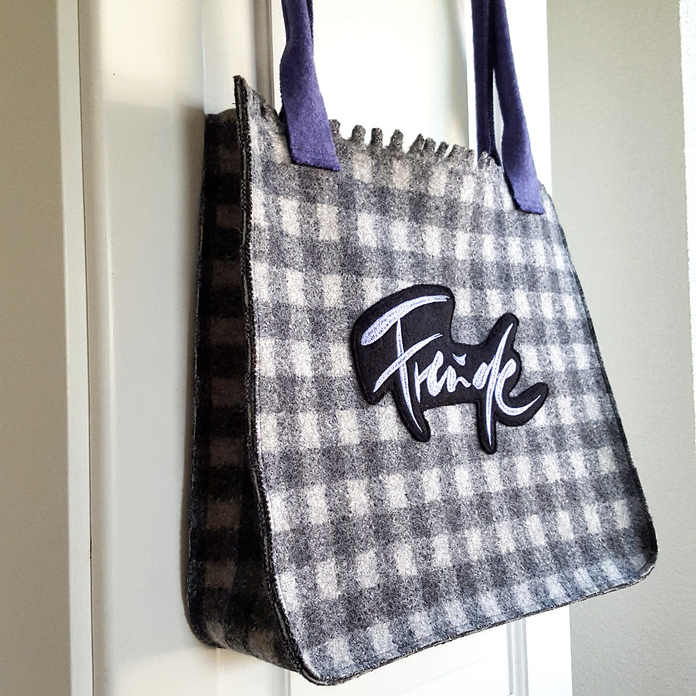 Handgemachter Karo-Stofftasche – Edle Tasche mit „Freude“-Stickerei und herausnehmbarer Innentasche