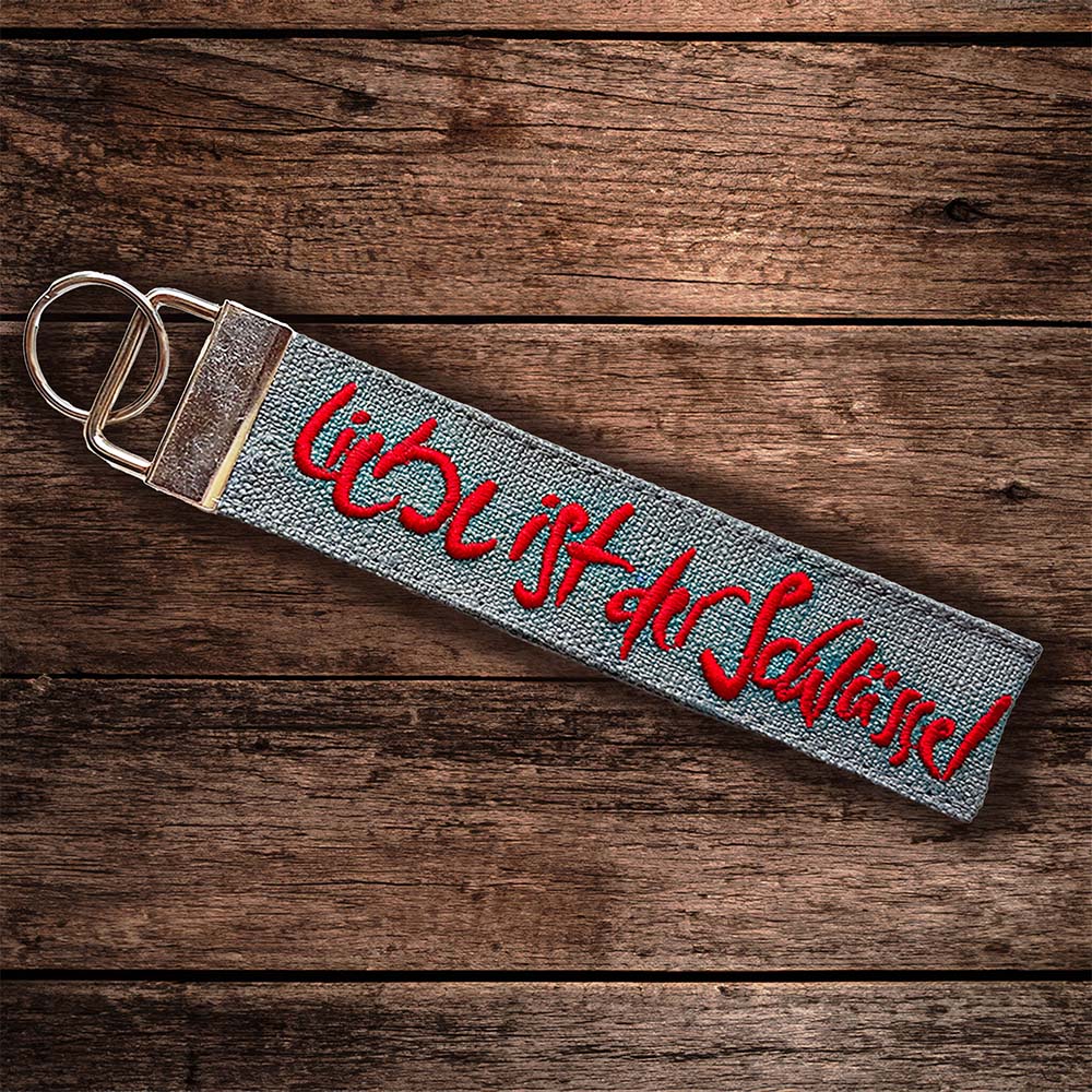 Suchst du einen Schlüsselanhänger und Taschenbaumler, der mehr ist als nur praktisch ist? Unser handgefertigter Anhänger aus antikem Bauernleinen trägt die inspirierende Botschaft „Liebe ist der Schlüssel“ (Sign by Jwala®) – ein liebevolles Statement, das dich im Alltag begleitet und immer wieder an das Wesentliche erinnert.