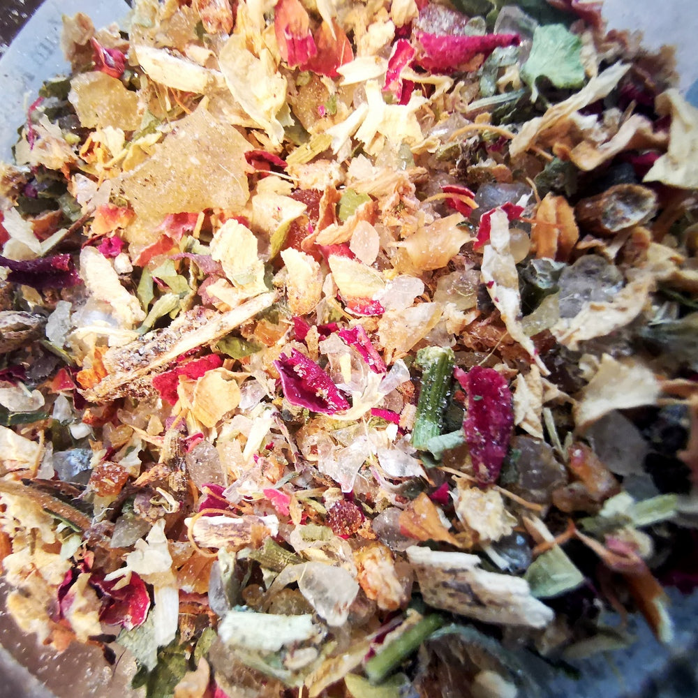 Räuchern mit diesem Räucherwerk ist ein tiefgehendes Versöhnungs-Ritual, das uns mit der Weisheit der Natur verbindet. Die sorgsam ausgewählten Kräuter und Harze – darunter Rosenblüte, Myrrhe, Strohblumensamen und Bauernjasmin – entfalten ihre feine, ätherische Energie und helfen, das Herz für Versöhnung zu öffnen.