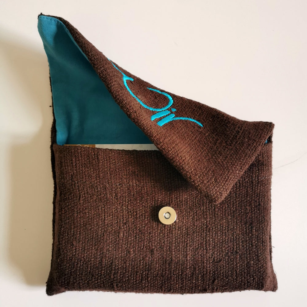 | Farbe: | Braun (Bauernleinen), Türkis (Futter) - von Jwala selbst gefärbt |