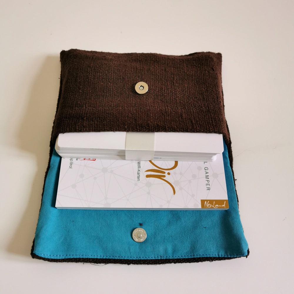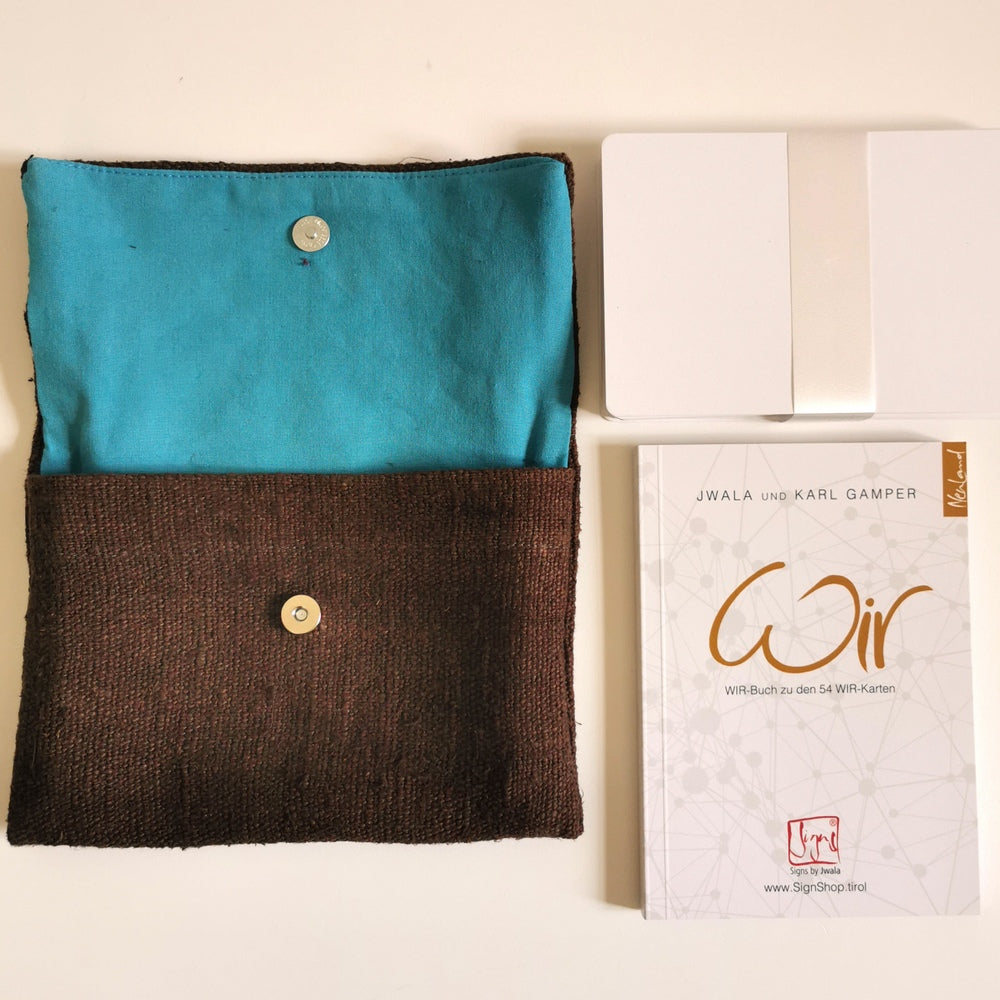 WIR-Karten-Set + WIR-Bauernleinentasche - Braun/Türkis