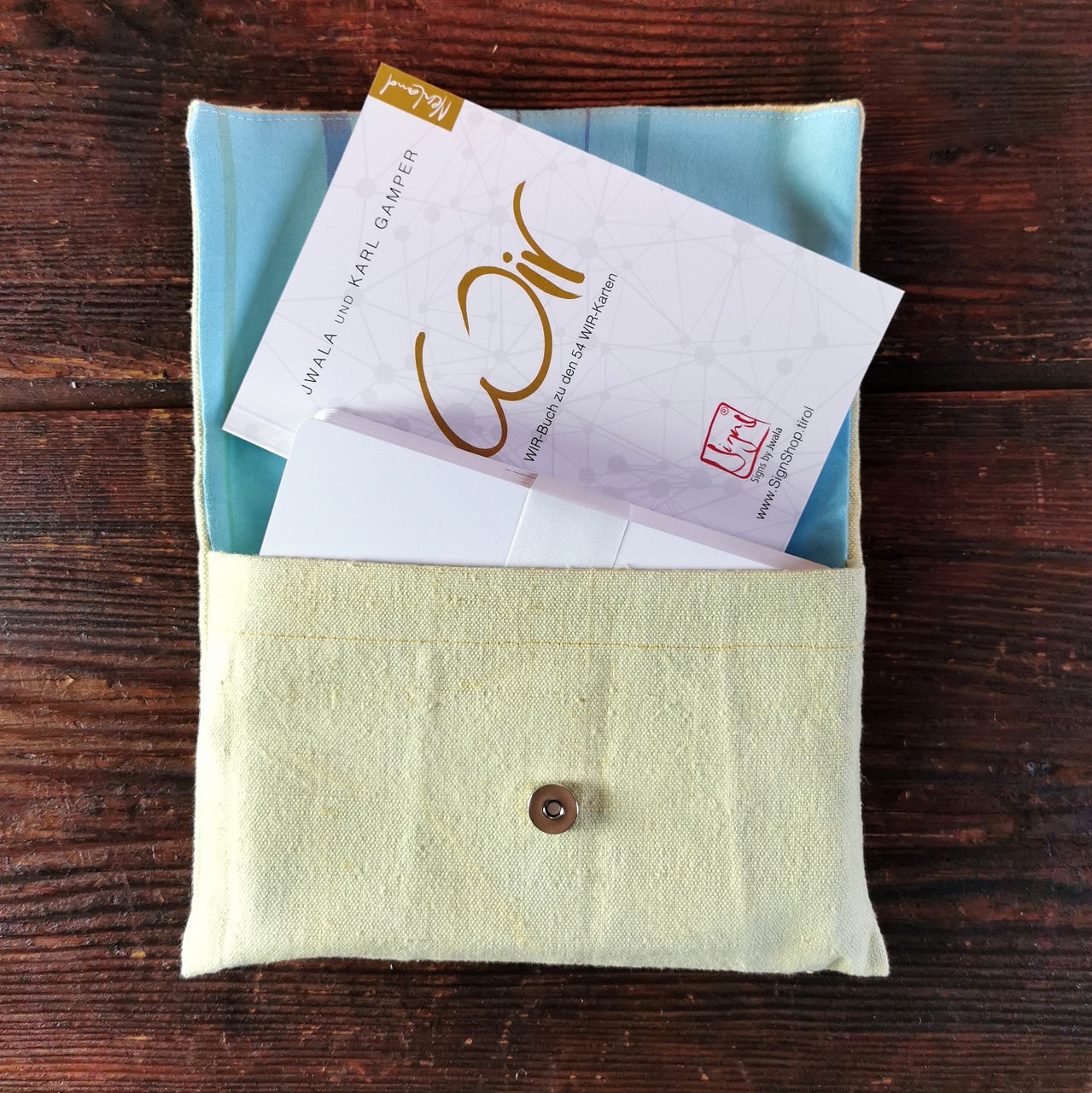 WIR-Karten-Set + WIR-Bauernleinentasche - Hellgelb/Türkis